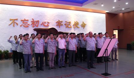 在宣誓廳,由公司黨委書(shū)記、董事長(cháng)曾祥志領(lǐng)誓,全體黨員整齊列隊,舉起右拳、面對黨旗,重溫了入黨誓詞,鏗鏘有力的誓言響徹宣誓大廳。