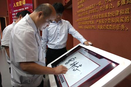 宣誓完畢,每位黨員在黨旗的映襯下,在《共產(chǎn)黨員承諾書(shū)》上莊嚴簽名。